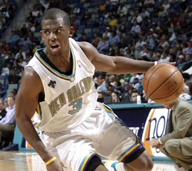 Christopher Emmanuel Paul (born May 6, 1985) is an American professional basketball player who currently plays point guard for the New Orleans Hornets of the NBA. His nickname is CP3. He has averaged 30 points and 10 assists three times (all in 2008) in the NBA playoffs.